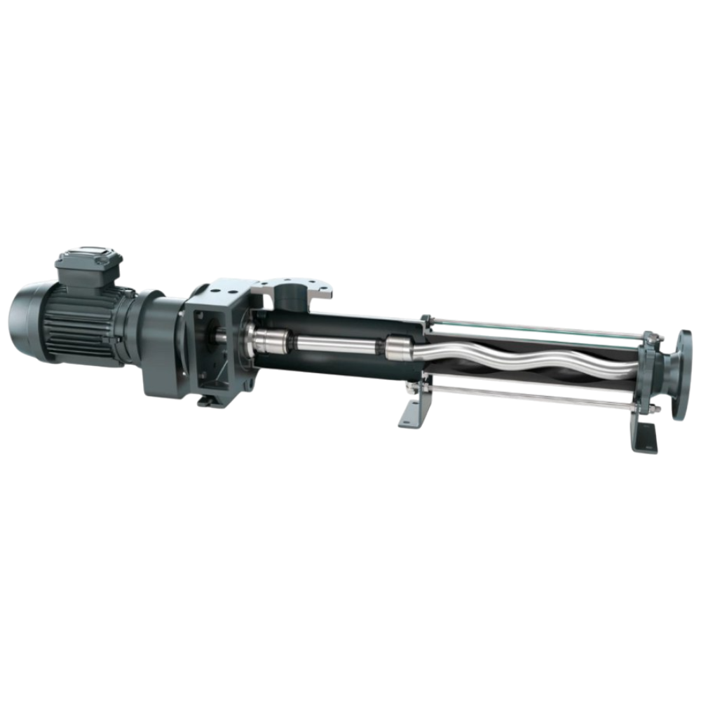 Ассортимент включает шнековые, винтовые и погружные насосы, решения для перекачивания густых, абразивных и химически активных жидкостей, а также вспомогательное оборудование